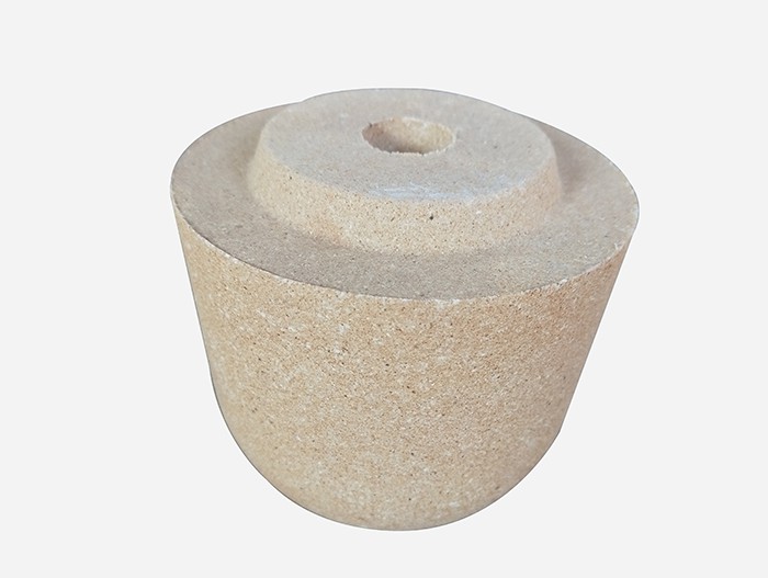 塞頭磚位于塞棒下端和水口磚呈嚴密配合的耐火材料質磚。不澆注時它堵住水口確保不漏鋼。澆注時提高塞棒,使塞頭磚和水口磚產生間隙,鋼水從水口流出。控制塞棒的高低,可調節鋼水的流出量。塞頭磚和棒芯間可用螺紋或銷子固定。塞頭磚可以是黏土質、不燒高鋁質及焦油浸漬的不燒高鋁質磚。